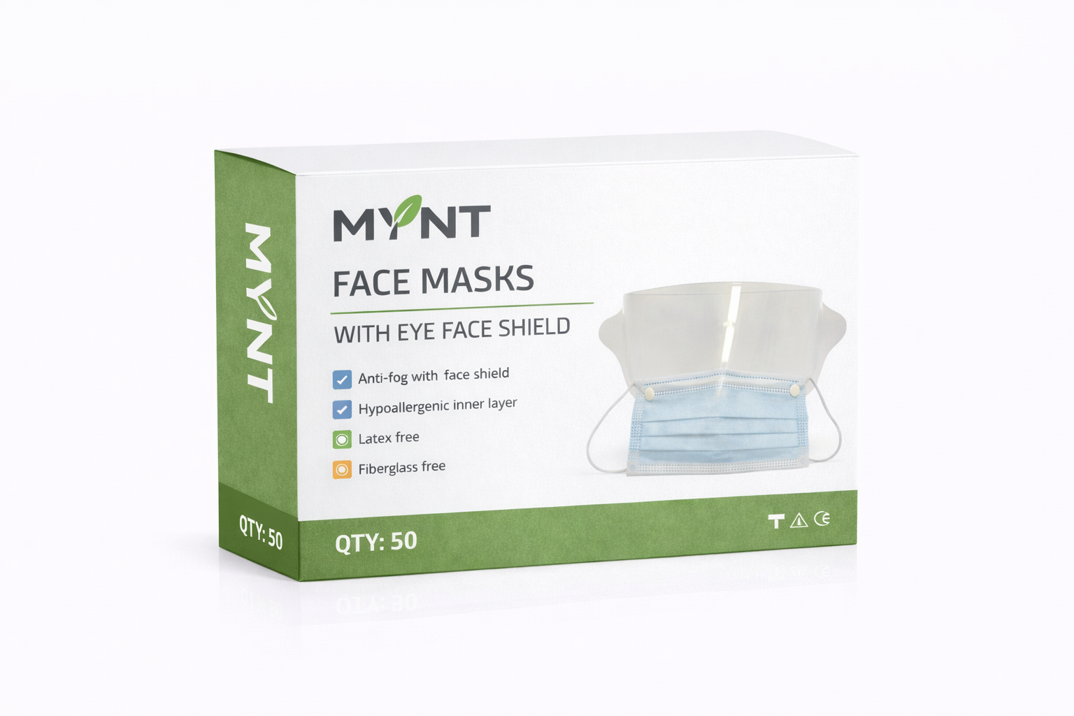 | MYNT-1250 | Face Mask – ASTM 3 – With Eye Face Shield – White | BOX25 / CS10 |